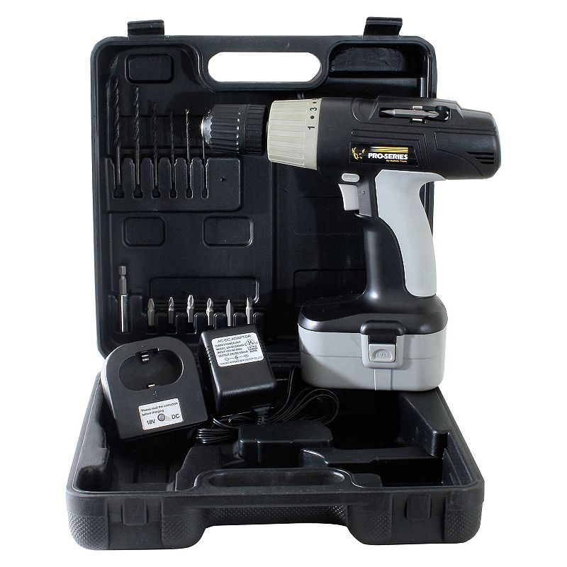 keyless chuck Forward\/reverse switch 16 torque settings Quick-charge battery recharges in about 3 to 5 hours Convenient and durable storage case Includes: drill, 18V battery, UL charger, 6 drill bits, 6 screwdriver bits &
